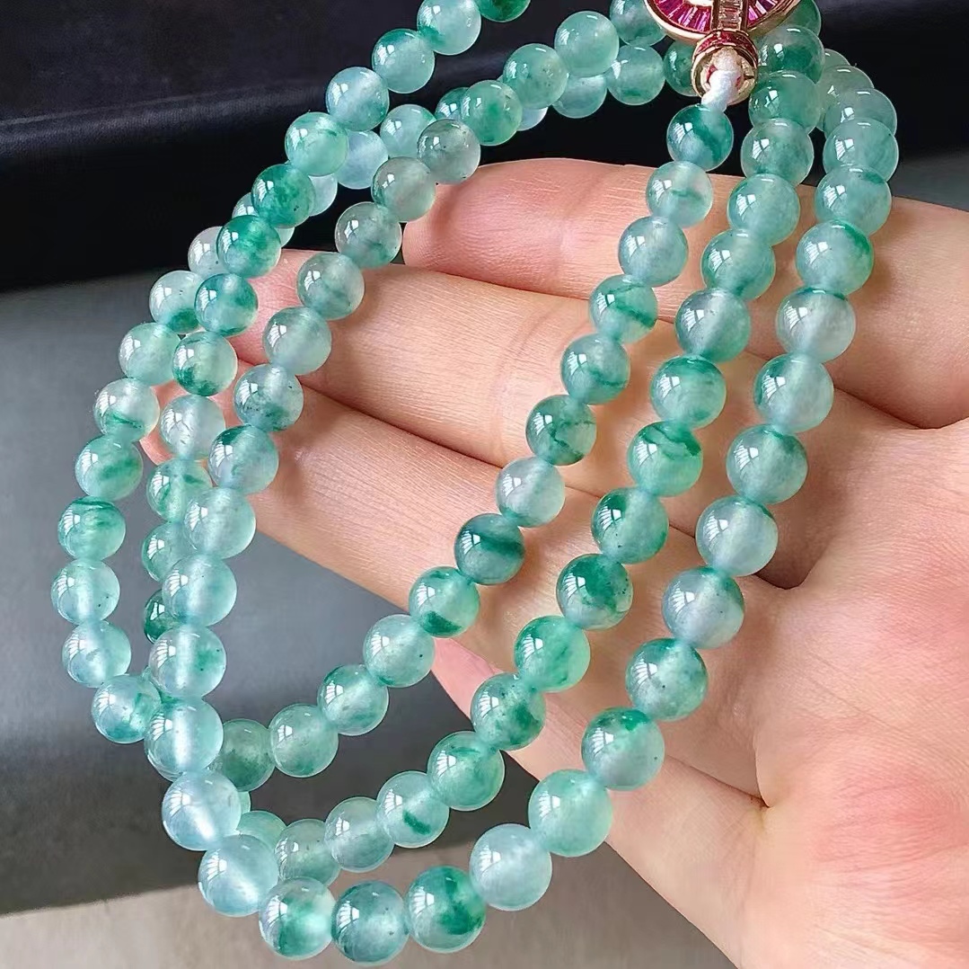 高(gāo)冰玻璃底翡翠手串