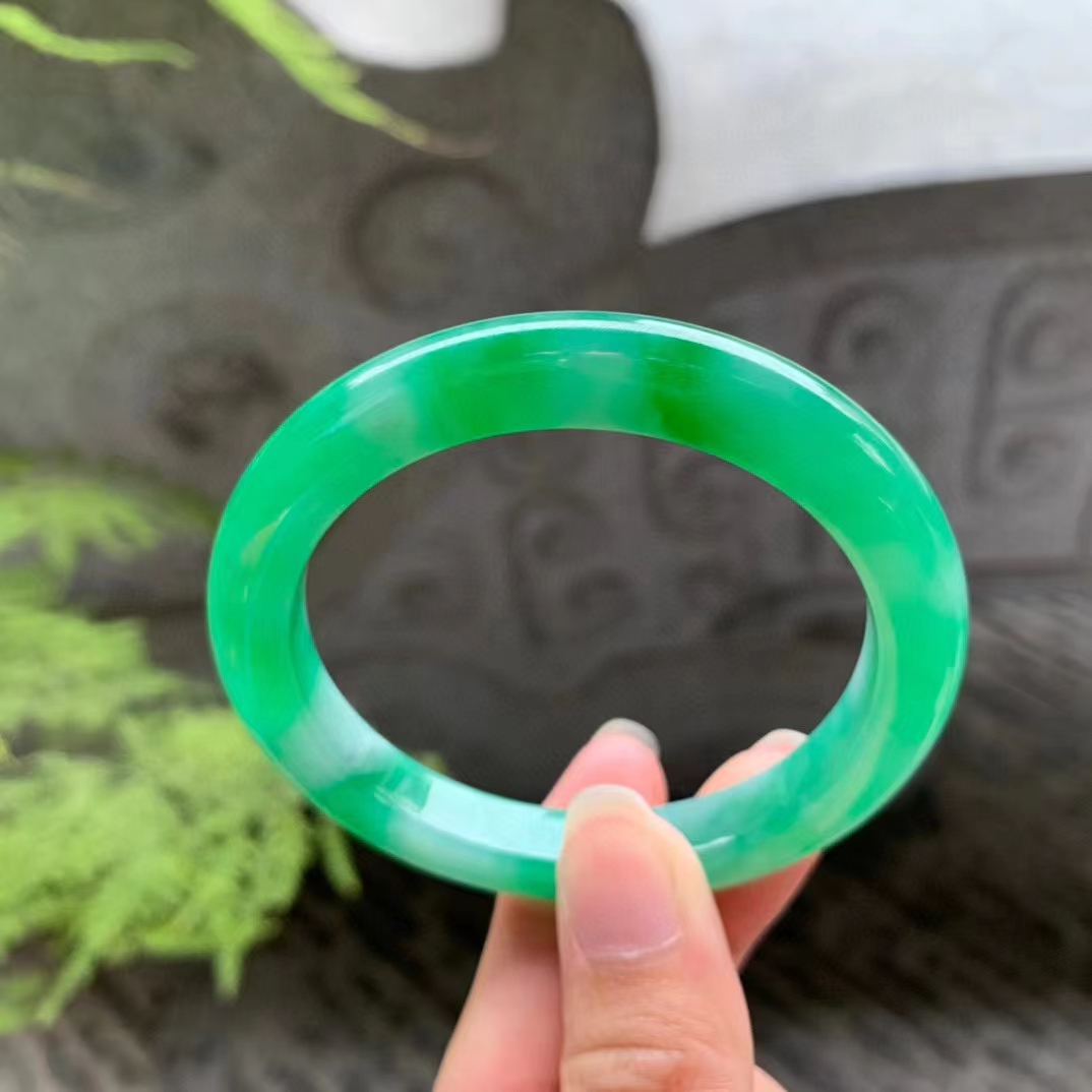 高(gāo)冰飄花(huā)圓條翡翠手镯